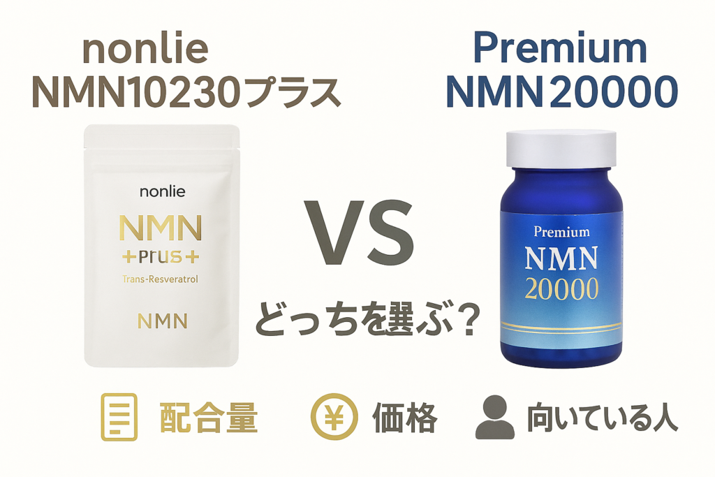 nonlie NMN10230プラス vs Premium NMN20000どっちを選ぶべき?配合量・価格・失敗しない選び方を比較